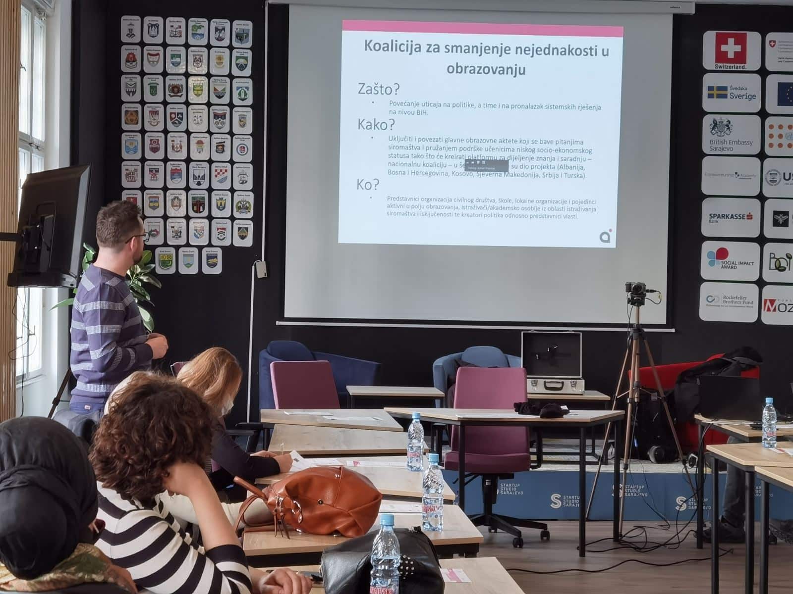 Prvi sastanak Koalicije za smanjenje nejednakosti u obrazovanju u okviru ARISE projekta održan je ovog utorka, 30.11.2021. godine u prostorijama Startup Studija Sarajevo. Sastanku je uživo ili putem Zoom platforme prisutvovalo 28 učesnika među kojima su bili predstavnici organizacija civilnog društva i institucija koje se bave problemima nejednakosti u obrazovanju, predstavnici škola, nastavnici te istraživači u oblasti siromaštva i isključenosti.