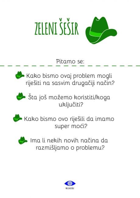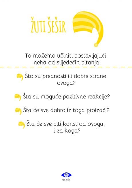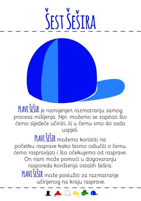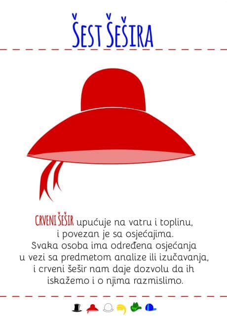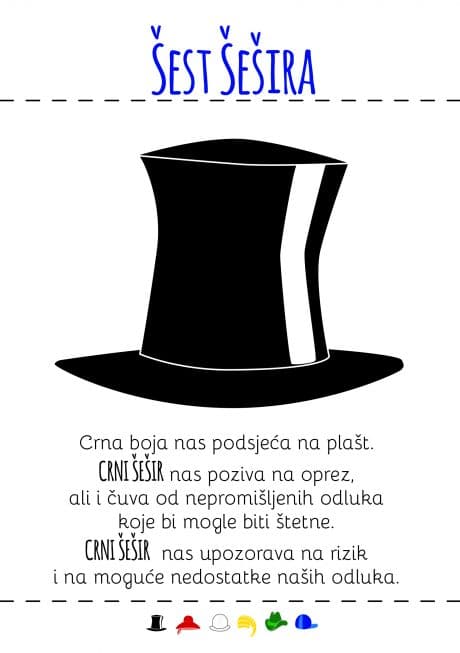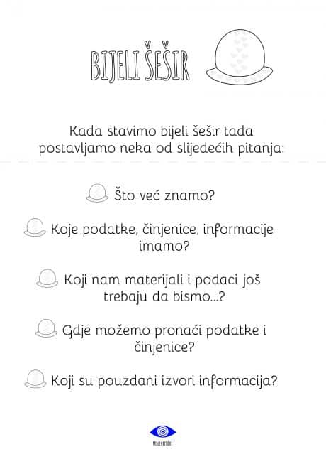 - Kartice sa šest šešira i primjerima pitanja